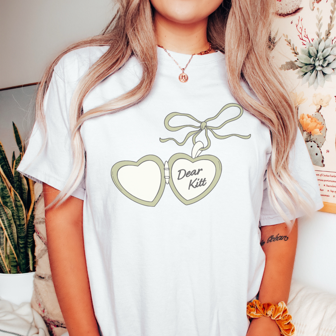 Keep their secret close to your heart. This charming T-shirt, inspired by the intimate correspondence in Divine Rivals, features a delicate, hand-drawn locket opening to reveal the tender salutation, "Dear Kitt." It’s a beautiful, understated tribute to the beginning of Iris and Roman's epic love story, symbolizing the private world they built through their letters. For every reader who cherished their magical connection, this tee is a wearable love note.