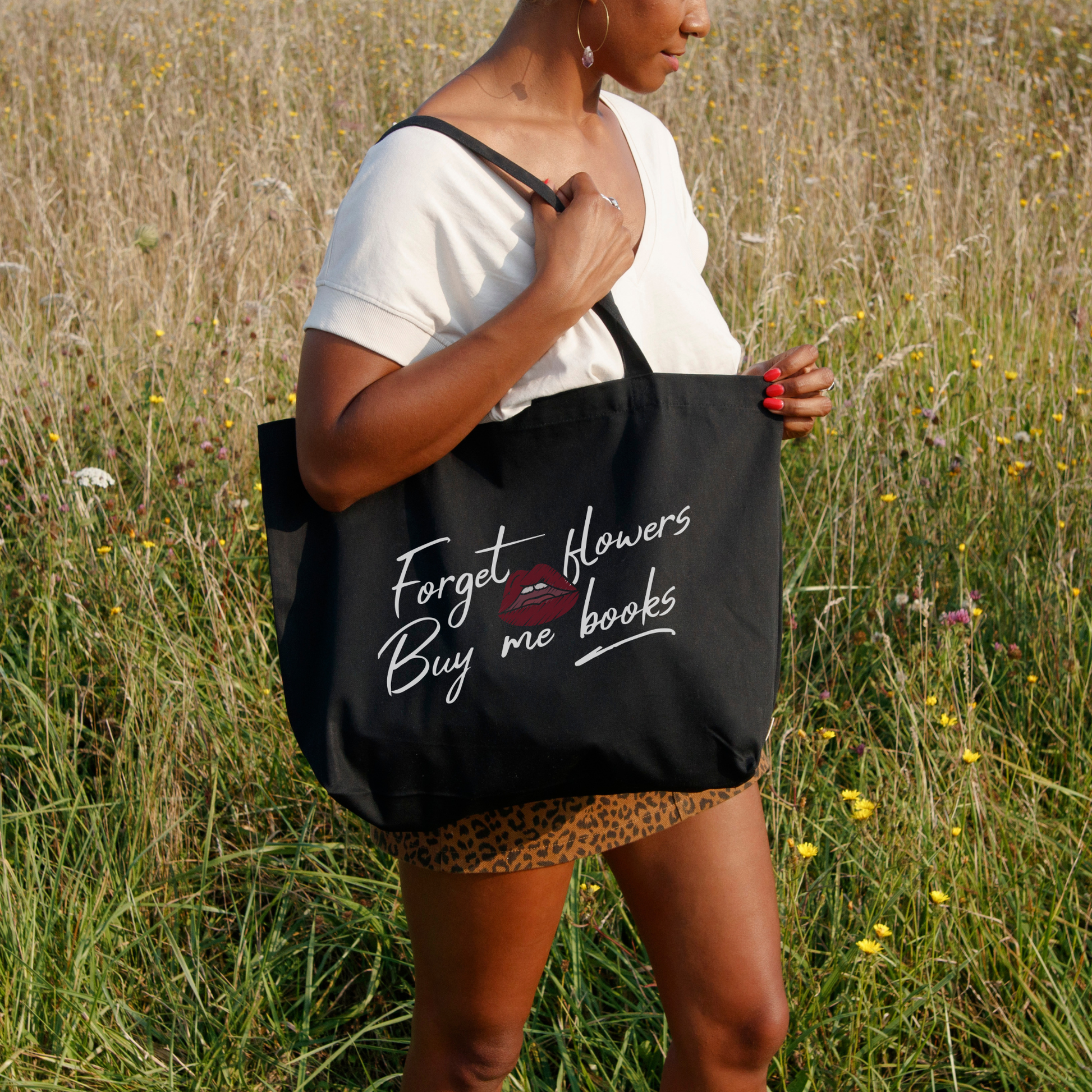 Forget Flowers, Buy Me Books Large Organic Cotton Twill Tote Bag