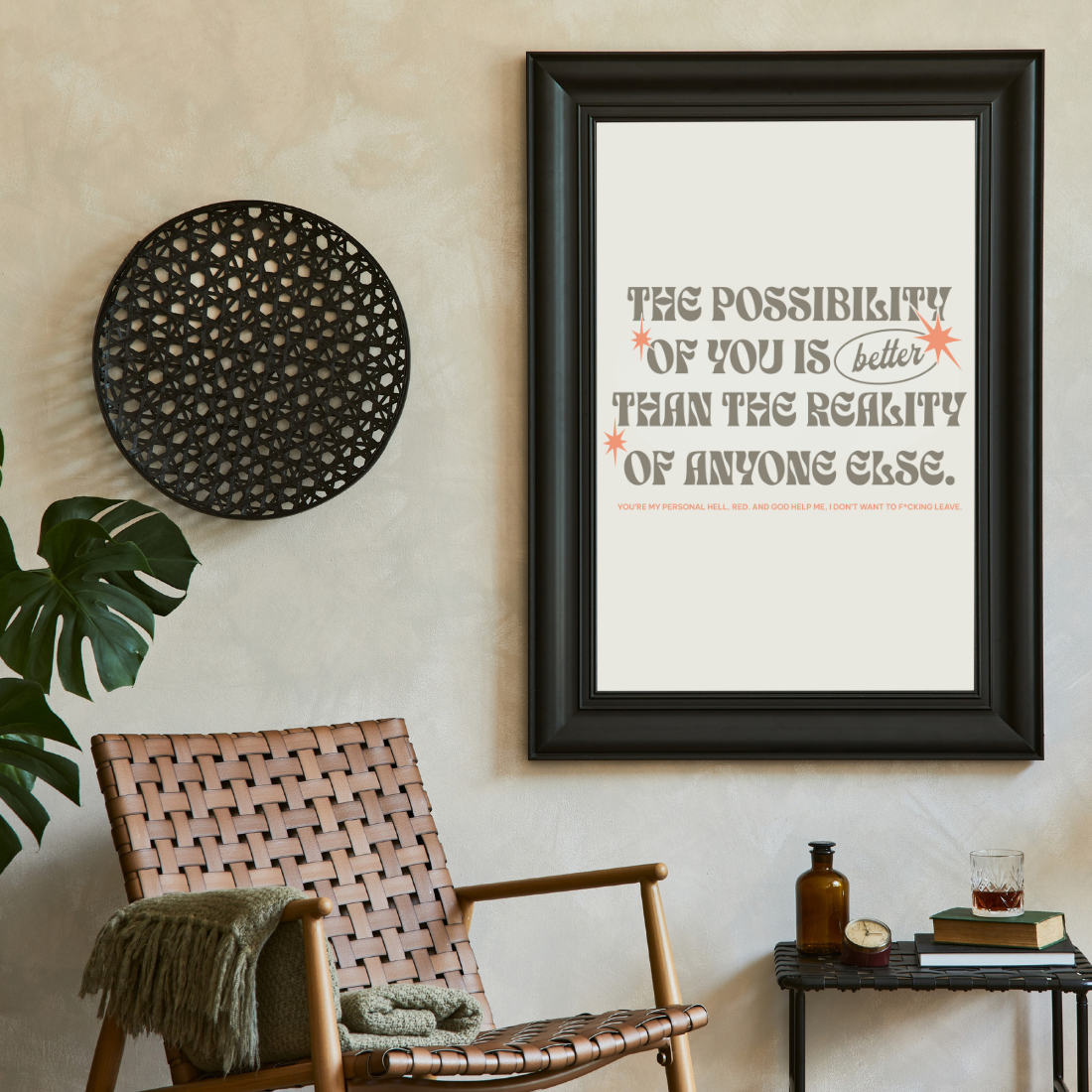 Fill your room with the words that broke us and put us back together. This art print features the stunning quote from Twisted Hate by Ana Huang in a stylish, retro font. It’s the perfect wall decor for fans of Josh and Jules who appreciate the beauty of a hard-won love. Elevate your space with this literary masterpiece. Order your print now!
